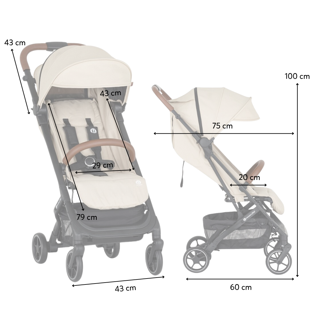 Petite&Mars Fly je cenově dostupný cestovní typ kočárku s rozměry příručního zavazadla, který si můžete vzít na palubu letadla. Je vhodný i na rychlé a časté přesuny autem. Kočárek vydrží až do konce kočárkovacího období díky vyššímu položení stříšky a průměrně prostornému sedadlu. Výška rukojeti 100 cm sedí spíše nižším až středně vysokým rodičům (do 165 cm).